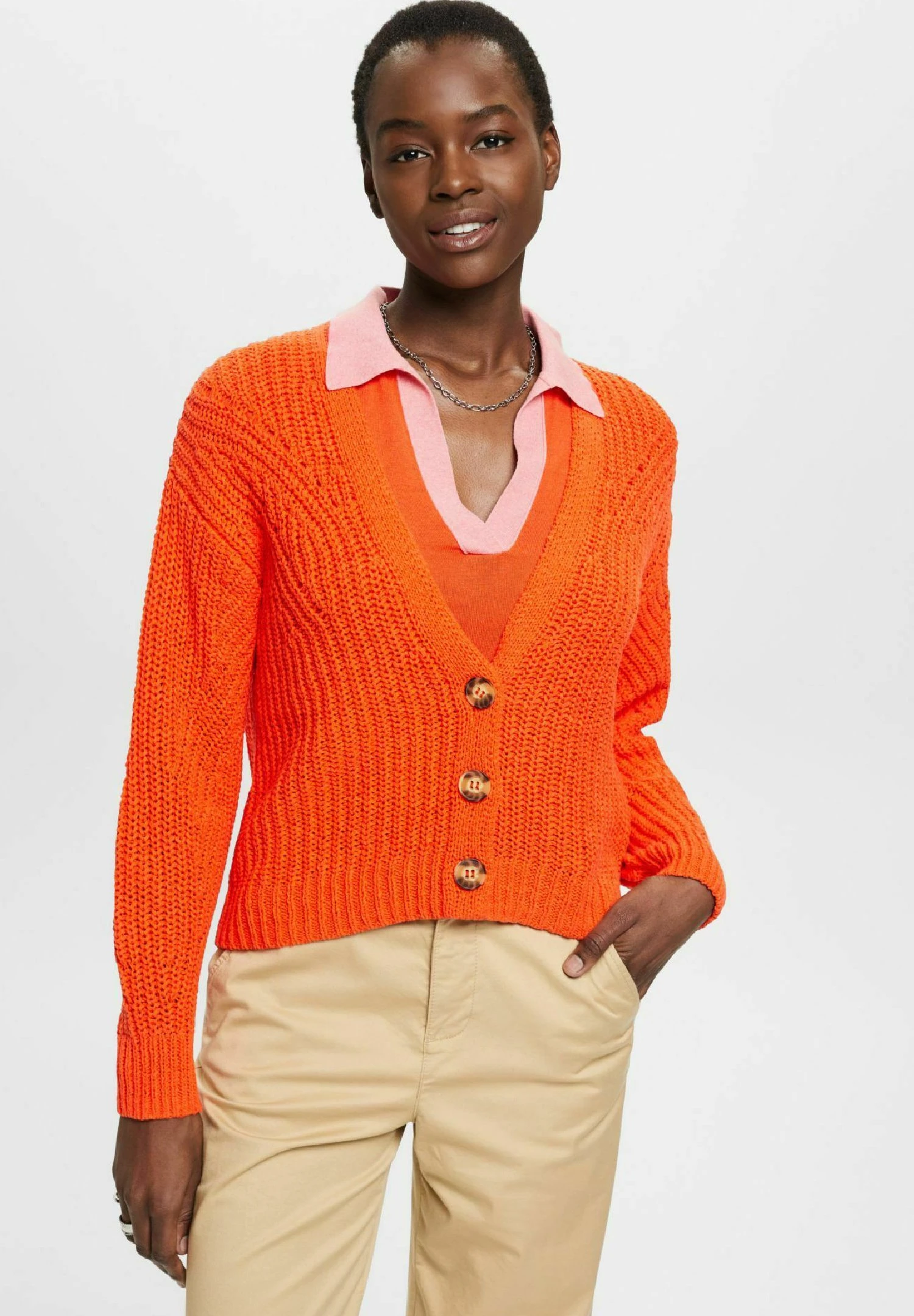 ESPRIT Tape Stitch – Cardigan – Orange Red New